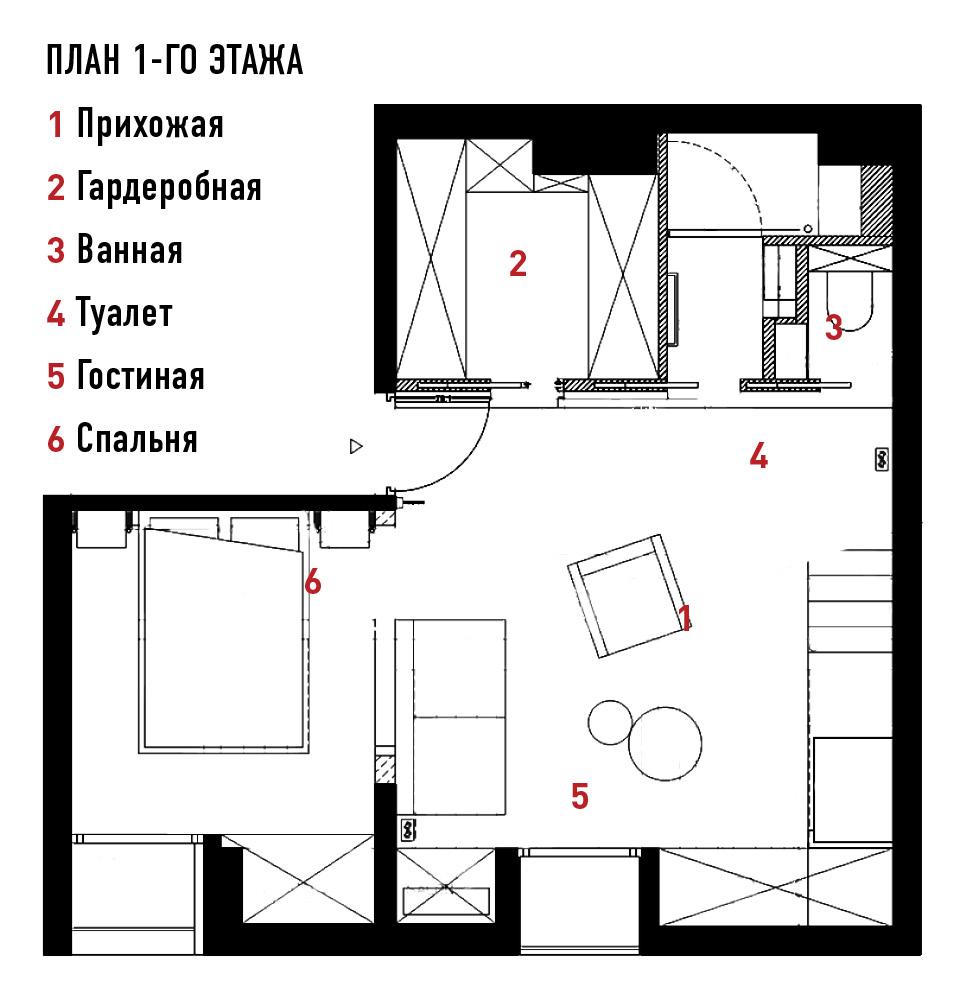 Леони Масон полностью перекроила квартиру, чтобы впустить в нее естественный свет и сделать зрительно просторней. Архитектор снесла межкомнатные перегородки и убрала почти все двери: прихожая перетекает в гостиную, а необычный асимметричный проем, ведущий в спальню, закрывается лишь широким занавесом. На втором этаже появился небольшой кабинет — фактически он находится в лестничном холле, а остальной метраж отдан под объединенную кухню-столовую-гостиную, где в роли единственного разграничителя пространства выступает диван Ottoman по дизайну Ноэ Дюшофур-Лоранса для Cinna. Там, где приватность все-таки необходима (прежде всего в сантехнической зоне), Масон заменила распашные двери на раздвижные, которые помогают экономить пространство.
