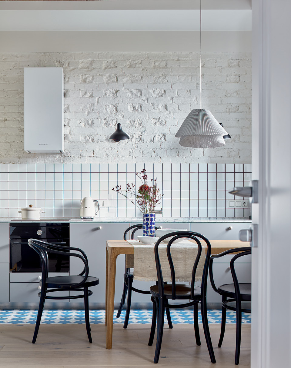 Хозяева сразу отказались от газовой плиты, чтобы без проблем объединить кухню с гостиной. “Во всех своих проектах я всегда увеличиваю мокрые зоны. На кухне и в ванной мы проводим достаточно много времени”, — объясняет Мария. Чтобы гостиная не казалось чересчур узкой, проем между ней и кухней сделали максимально большим, но полностью от него не избавились, чтобы сохранить четкое зонирование.
