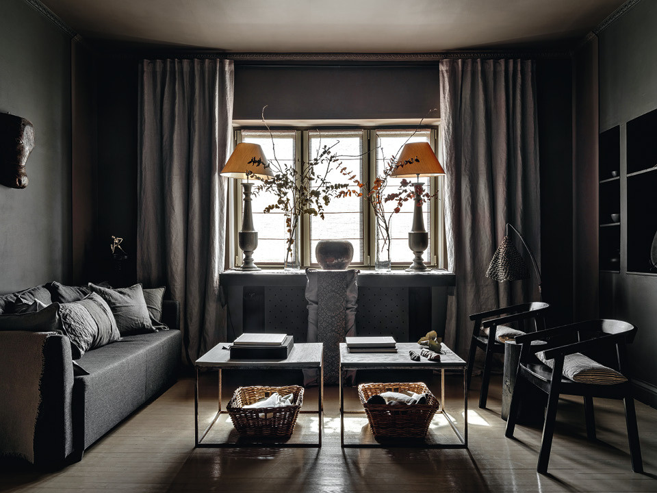 Семья Анастасии Комаровой прожила в этой квартире больше двадцати лет, а с этого года жилье сдается в аренду. Перепланировка, которую мы видим, была сделана еще в середине 1990‑х. “Мы переехали из коммуналки, и мама хотела, чтобы у нас с сестрой была своя детская, поэтому превратила двушку в полноценную трешку”, — рассказывает дизайнер. Кухню перенесли в коридор, а ее место заняла родительская спальня. После того как сестра Анастасии вышла замуж, а мама переехала за город, она сделала из этого пространства творческий полигон. “Цветовая гамма квартиры менялась вслед за моим настроением: когда-то она была белой, потом появились коричневые и темно-зеленые оттенки, сейчас все серое”, — рассказывает хозяйка.