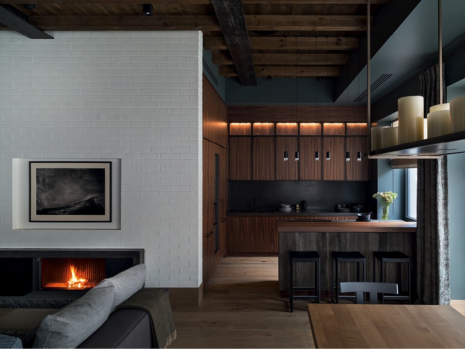 Как рассказывает Александр, заказчики хорошо знали, чего хотят. Например, они заранее решили отдать сыновьям-школьникам весь третий этаж — качественно его звукоизолировать, чтобы два поколения семьи могли проводить время в свое удовольствие, не мешая друг другу. Хозяин дома также настаивал на камине. “Это редкий случай, когда камин в доме действительно используется, — говорят авторы проекта. — Бывает, что хозяин возвращается с работы за полночь и идет рубить дрова, чтобы развести огонь”.