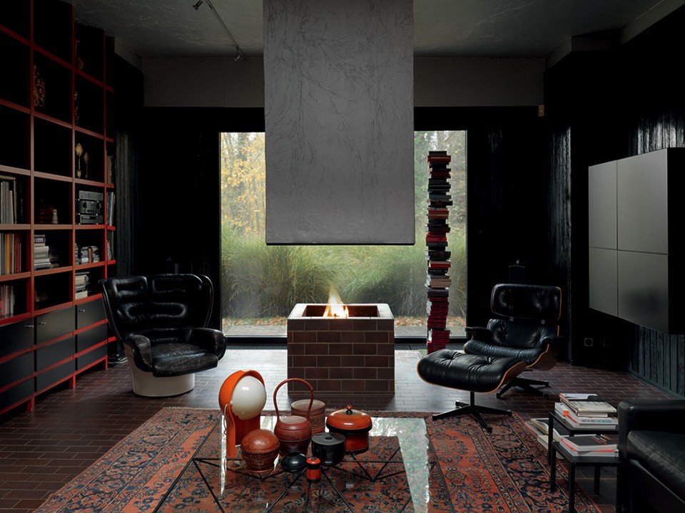 В 1969 году к нему обратилась молодая пара из Фландрии, мечтавшая о современном доме. Сейчас, глядя на эту черно-белую коробку, разлинованную бордовыми стойками, легко представить себе, например, живопись Мондриана, а вот с кочевниками она как-то не вяжется. Но это пока не вникнешь в концепцию — внешний каркас дома Зермеус мыслил как опоры кочевого тента. Архитектор хотел возвести дом из стали и дерева, но технологии 1970‑х годов внесли в этот план корректировку: металл пришлось менять на кирпичную кладку, а поверх нее крепить деревянные щиты.