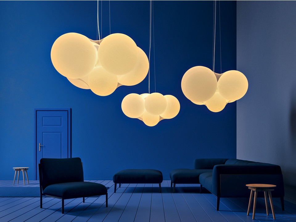 Уже давно не новичок в предметном дизайне, Дима сотрудничает со многими компаниями. В этом году его новинки можно было увидеть на Euroluce сразу на трех стендах. Один из них — Axo Light. Светильник Cloudy представляет собой большие акриловые шары, уложенные в текстильный кокон.