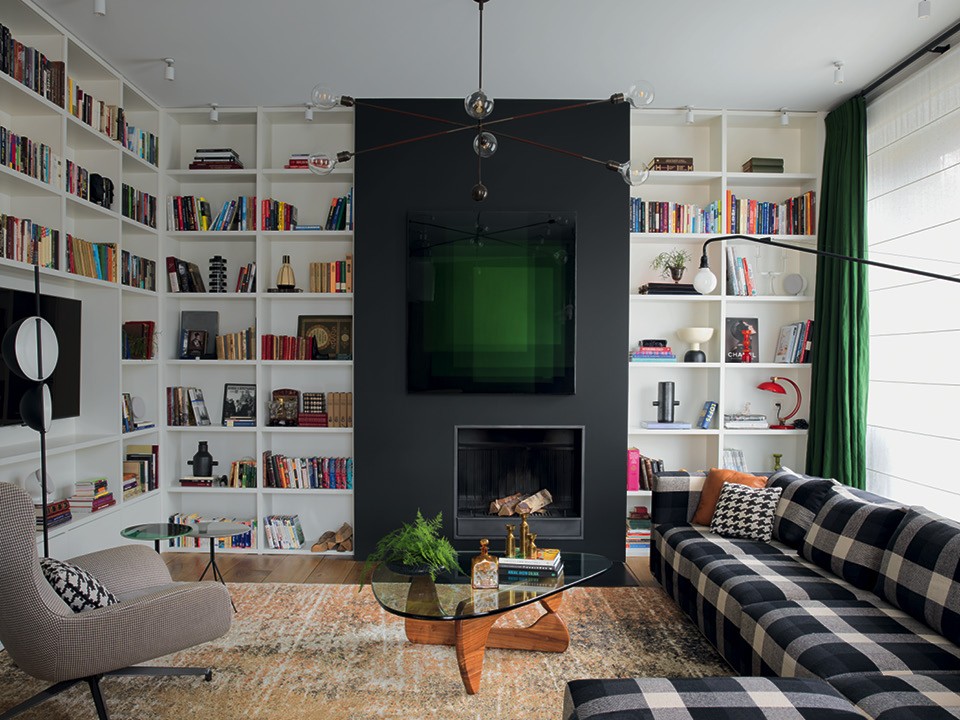 Хозяева этой квартиры на Таганке сделали ремонт около десяти лет назад, а не так давно поняли, что им поднадоел монохромный черно-белый интерьер, и задумали немного его изменить. По публикациям в интернете они нашли дизайнера Наталью Маслову и пригласили ее посмотреть, что можно сделать. “Они хотели добавить цвета, фактур, драйва и искусства”, — говорит Наталья. Основной сложностью было то, что весь ремонт нужно было сделать ровно за три недели, пока семья будет отдыхать, поэтому дизайнеру пришлось показывать чудеса организации и подготовки перед началом стройки. Планировка квартиры была тщательно продумана еще тогда, при первом ремонте, так что все стены дизайнер оставила на месте, а также сохранила немало мебели, например кухню, которая прекрасно вписалась в обновленную концепцию интерьера. А вот диван Minotti, который был в прекрасном состоянии, не подходил по цвету, поэтому Наталья решила его “переодеть”, и вместо классических светло-бежевых на фабрике сшили чехлы в крупную черно-бело-серую клетку. На такой активный принт Маслову вдохновило… постельное белье в комнате сына. “Когда я его увидела, то подумала: как здорово, что люди не боятся сами покупать аксессуары и текстиль с активными принтами. И мне захотелось эту клетку перенести в гостиную — она классно сочетается с книжными полками во всю стену”, — вспоминает дизайнер.
