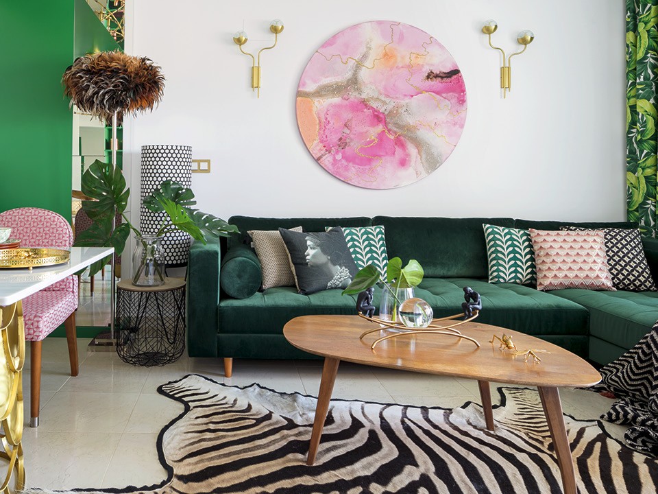 Вообще квартира предназначена для летнего отдыха семьи у моря. По словам декоратора, заказчица весьма экстравагантная женщина, любит окружать себя яркими вещами и неизменно притягивает внимание. Интерьер Надежда Чак сделала ей под стать. “Я хотела создать иллюзию, что квартира находится где-то в тропиках, — рассказывает Надежда Чак об этом проекте. — Для этого было использовано много растительных мотивов — листья, цветы”.