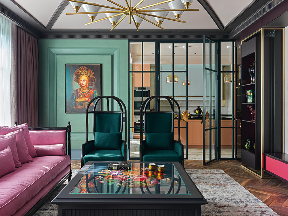 Жостовские шкатулки и русские терема подсказали дизайнерам бюро AR‑1 | Architecture & Design интерьер этой квартиры в Санкт-Петербурге.