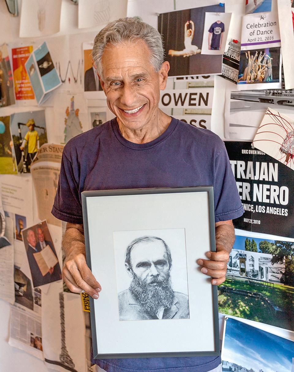 Эрик не знает русского языка, но про Россию — неожиданно много. Может без ошибки перечислить всех правителей СССР и РФ, от Ленина до Путина. Прочитал всего Достоевского, включая черновики незаконченного “Жития великого грешника”. Может внятно изложить программу конструктивистов. Не путает Лисицкого с Ладовским, Малевича с Мельниковым, а Гинзбурга — с Голосовым. Его бабушка и дедушка приехали в Америку из Польши и Австро-Венгрии, а родители уже были типичными нью‑йоркскими интеллектуалами. Отец был писателем, автором восьми книг. В переписке родителей Эрик недавно нашел обсуждение советских политических процессов 1937 года. Самого Эрика часто принимают за ньюйоркца, но бóльшую часть жизни он провел в Южной Калифорнии, а магистерскую степень получил в Гарварде. Когда мы рассказываем ему про высокомерное отношение нью‑йоркского архитектора Роберта Стерна к Калифорнии — мол, “это место, где нет энергии”, — Эрик смеется: