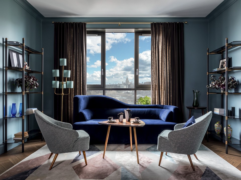 Заказчица Аллы Шумейко нашла дизайнера по публикациям в интернете и на первую встречу пришла подготовленная, с подборкой интерьеров, которые ей нравятся. “Это были фото квартир, где очень много всего — и мебели, и аксессуаров, там царили избыточность и даже легкий творческий беспорядок”, — вспоминает Алла. Также заказчица показала несколько картинок, которые просто находят отклик в ее душе, и оказалось, что у Аллы они также есть в закладках. Одной из них стала фотография с винтажного рекламного плаката Christian Dior, на котором изображена модель в платье шоколадного цвета с золотой подкладкой, а на фоне — пыльно-розовые детали. Именно это изображение подсказало цветовую гамму спальни — стены выкрашены в любимый Аллой холодный шоколадный цвет, а изголовье кровати отделано тканью того самого пыльно-розового оттенка. Из личных покоев хозяйки с одной стороны можно пройти в гардеробную и ванную комнату, а с другой — на балкон, где организовали небольшую библиотеку. Для того чтобы здесь было комфортно отдыхать и читать даже в холода, стены утеплили и покрасили в шоколадный, а на пол положили керамогранит, имитирующий паркет и по цвету полностью совпадающий с деревом в квартире.