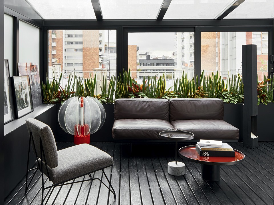 Чтобы максимально облегчить интерьер, Эмиль и Кристоф отдали часть террасы под зимний сад и вынесли в него гостиную. Освободившееся общее пространство разделили между собой только кухня и столовая.