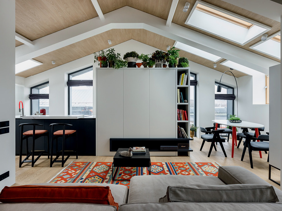 Дизайнеру Юлии Тазулах и команде Hot Walls достались в работу апартаменты в мансарде с большим количеством окон, и это отразилось на планировке и дизайне интерьера.