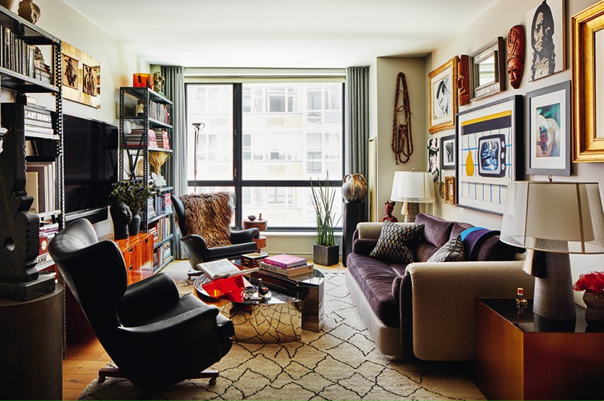 В своей небольшой квартире в нью-йоркском Челси дизайнер Эндрю Торри собрал любимые предметы и большую коллекцию искусства, которая теперь занимает все стены.