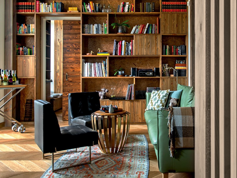 Традиционные для Санкт-Петербурга дворы-колодцы известны тем, что естественного света в них немного, и жильцам, чьи окна выходят во двор, приходится проявлять смекалку, чтобы улучшить ситуацию. Хозяевам этой квартиры повезло с друзьями — дизайнеры Михаил и Николай Жилины хорошо знают особенности старого фонда и придумали, как увеличить жилое пространство и количество естественного света в нем. Изначально на 100 м² находилось всего четыре окна по одной стороне и коридор, съедающий целых 23 м², зато не было несущих стен. От коридора быстро избавились, с окнами поступили не менее радикально — прорубили их до пола, фактически удвоив количество естественного света. Подобное изменение получилось внести в конструкцию как раз потому, что квартира выходит во двор и там нет исторического фасада.