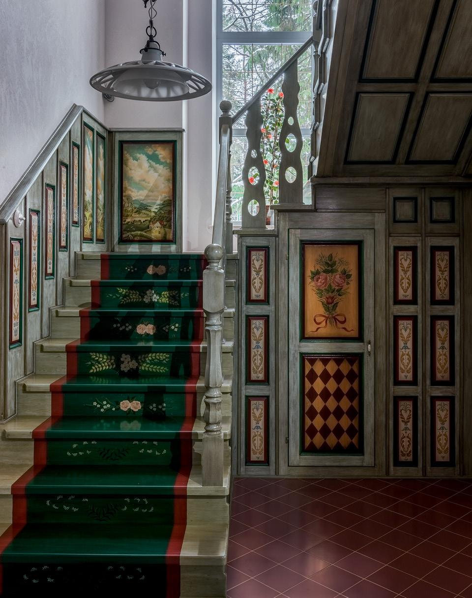 С будущими заказчиками Катя познакомилась несколько лет назад, когда работала в антикварном магазине недалеко от Малаховки, где живет сама. Пара средних лет присматривала себе в этих краях даже не мебель, а место для будущего дома. В итоге они купили дачу в Кратово, а строить новый дом было решено на фундаменте старого. Площадь вышла около четырехсот квадратных метров. На первом этаже, помимо традиционных кухни и общественного пространства (оно почти целиком отведено под столовую), разместился также зимний сад — хозяйка увлекается разведением орхидей. Второй этаж, как водится, спальный.