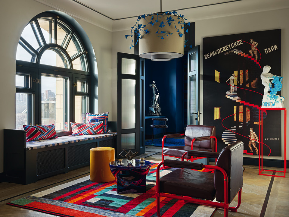 В московской квартире, оформленной Прохором Машуковым и Ольгой Седовой для художницы по костюмам, которая работает в кино, главная роль отведена авангардным принтам.