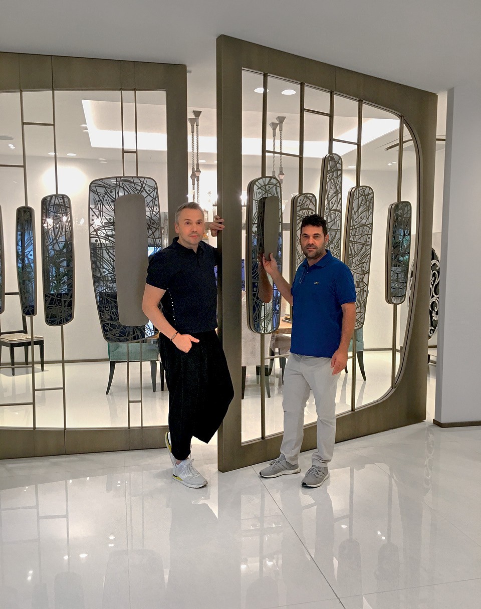 Красота Венеции вдохновляет миллионы людей по всему миру, и Майк Шилов не исключение. Для марки Arte Veneziana дизайнер создал небольшую коллекцию под названием Gonfalone в честь венецианского флага с крылатым львом и шестью “хвостами”, обозначающими исторические районы города. Таким же количеством пластин из муранского стекла украшен фасад комода — основного предмета коллекции. Его столешница тоже стеклянная, и на ней вручную выгравирован символ города — лев святого Марка. Комод получился эффектным и функциональным: в задней панели Майк спроектировал скрытые отверстия для проводов, поэтому его можно использовать также в качестве тумбы для мультимедийной техники.