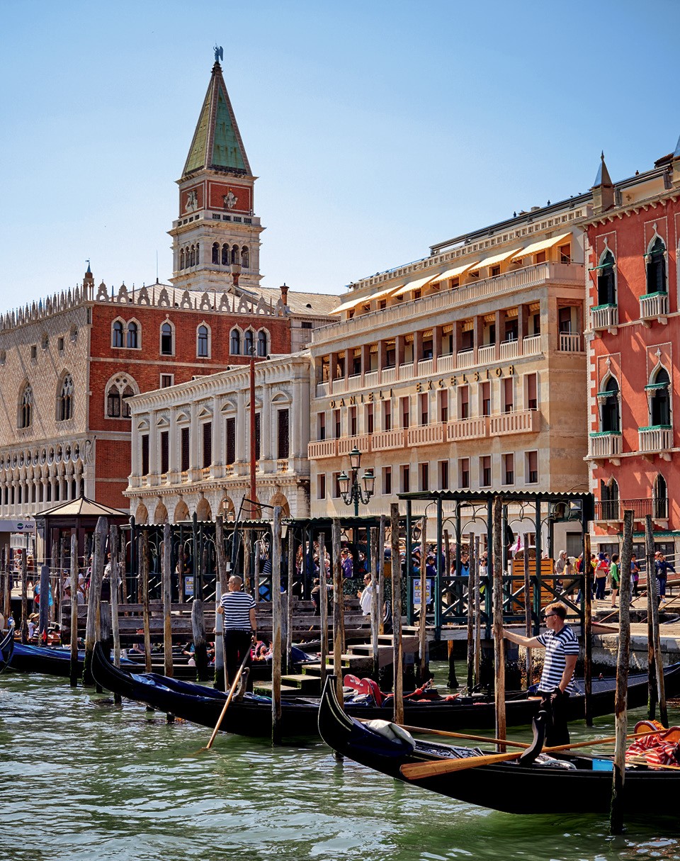 Главную площадь города лучше всего наблюдать с воды — тогда получится, не задирая головы, рассмотреть и кампанилу Святого Марка, и одноименную часовую башню, и, конечно, палаццо Дукале.