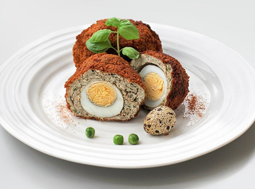 Вареные яйца, мясной фарш, панировочные сухари — считается, что впервые британцы смогли отведать яйца по-шотландски в лондонском торговом доме Fortnum & Mason, где такое блюдо появилось в меню в 1738 году. По другой версии, история рецепта восходит к эпохе Империи Великих Моголов.