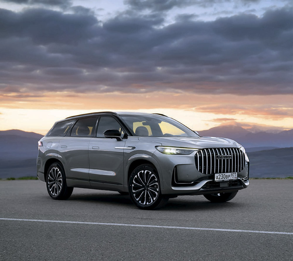 Почему большой? Потому что прежде нам был знаком лишь «Джей» малый, компактный кроссовер Jaecoo J7, пришедший в Россию в прошлом году. Как его уже успели окрестить – «Китайский Land Rover Evoque». С тех пор мы успели и попривыкнуть к неуклюжему неймингу – дескать, Jaecoo от немецкого Jager и английского Cool, получается «классный охотник». И смириться с несоответствием брутального интерьера «семерки» с внедорожными деталями возможностям ее подвески и трансмиссии. Впрочем, после недавней новости о том, что автомобили Jaguar и Land Rover будут строиться на платформах марки EXEED, входящей в концерн Chery, выражение «китайский Land Rover» начинает играть новыми красками.
