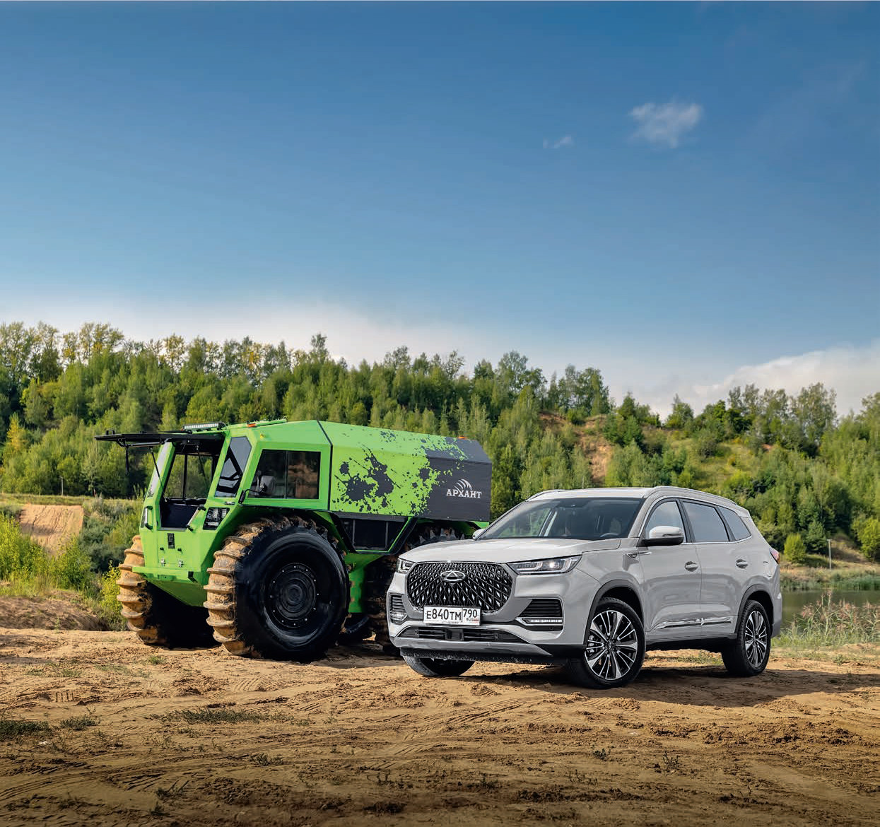 Глаза боятся, а машина делает. Сначала ломимся прямо в лесные заросли, только хруст вокруг. Затем карабкаемся на крутую гору и ухаем с другой стороны чуть ли не отвесно вниз. Наконец, катим к озерцу, окунаемся на малом ходу и… плывем! Пускай оставшийся на берегу флагманский кроссовер Chery так не умеет, зато герой дня именно он – дебютирует обновленным.