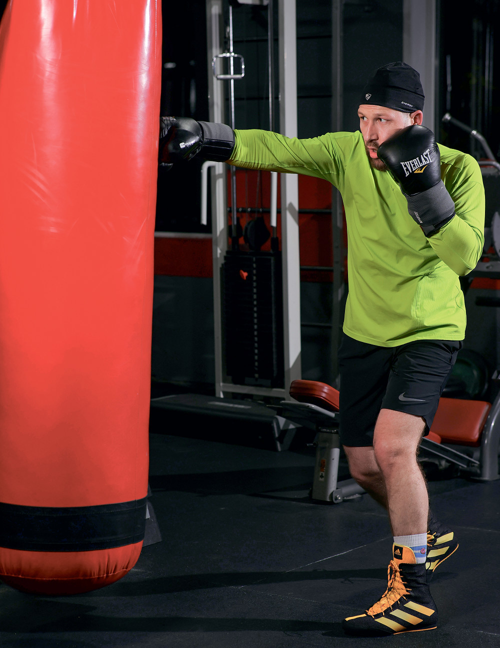 Начал работать над собой — пробежки, тренировки, и первые десять килограммов слетели очень легко, а дальше все на какое-то время встало, пока я не преодолел себя и не увеличил количество тренировок. Начались прыгалки, груши, спарринги, и я снова стал терять килограмм за килограммом, дойдя до отметки 95 кг. Тут опять почувствовал себя супергероем, пока не побоксировал с серьезными дяденьками и понял, что ни хрена не умею. Бокс — это не про то, как отлупить друг друга, ты должен полностью выйти из зоны комфорта, сосредоточиться, научиться предугадывать действия соперника, опережать их, совершать обманные движения… А для этого нужны не только сильные руки, а еще и крепкие ноги, и ты осознаешь, что тебе необходимо еще очень долго и очень хорошо работать над собой.