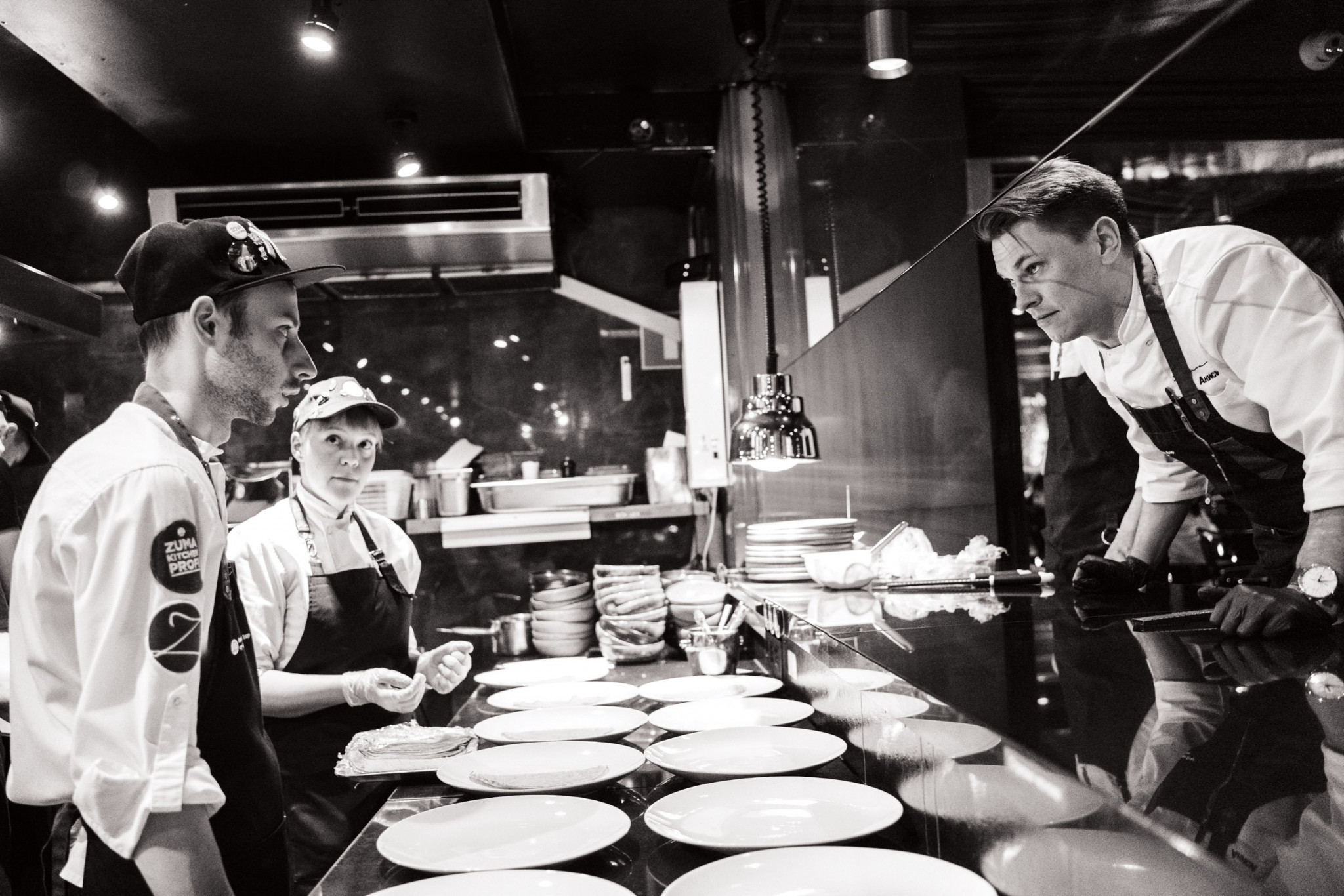 Один из ключевых вопросов любой, как сейчас модно говорить, «креативной индустрии» — как увязать авторские творческие амбиции с реалиями. В Zuma это решено на органическом уровне. На кухне здесь работают противоположности — бренд-шеф Егор Анисимов и шеф-повар Евгений Митрохин.