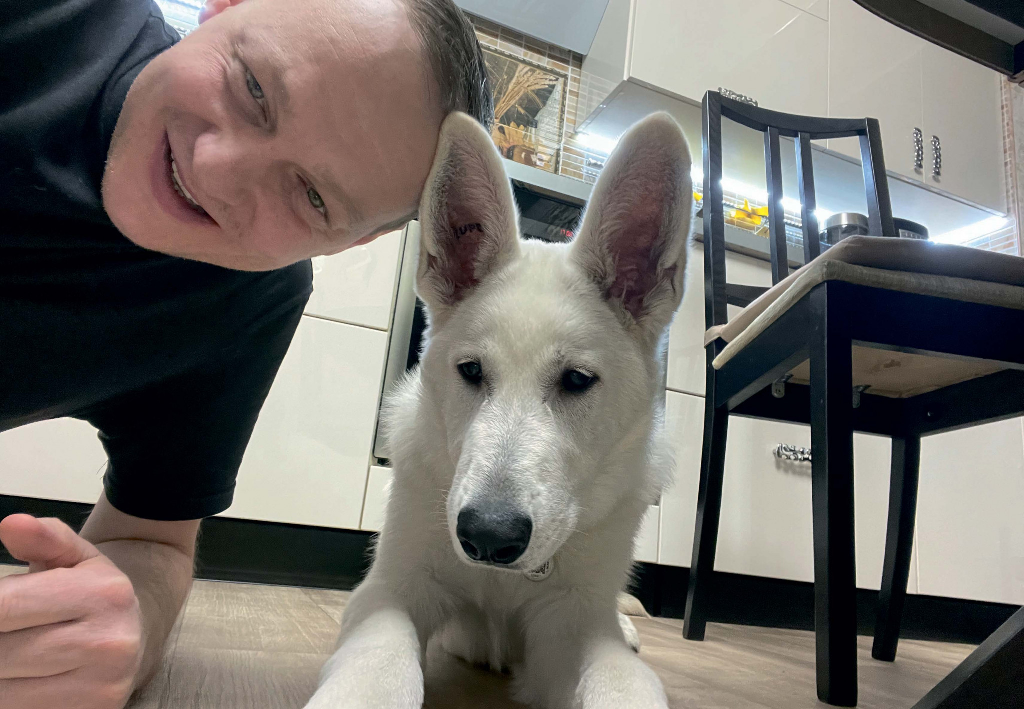 Поначалу я думал выбрать какую-то северную породу, например, хаски, но в итоге мы остановились на белой швейцарской овчарке. Долго искали правильного заводчика, пока не нашли нашего Амура, или, как мы его чаще называем, Амурчи. Ему сейчас уже 9 месяцев, мы его тренируем, занимаемся с кинологами, хотим, чтобы он у нас выступал, потому что это очень красивый пес, который с каждым днем становится все умнее.