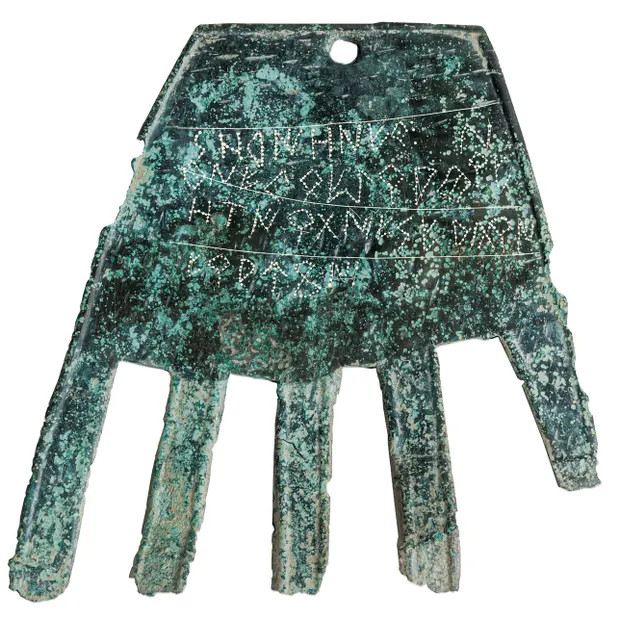 Это дает основание полагать, что на металлической руке обнаружен единственный известный образец прото-баскского (васконского) языка, который доказывает существование письменности у этого народа в древности.