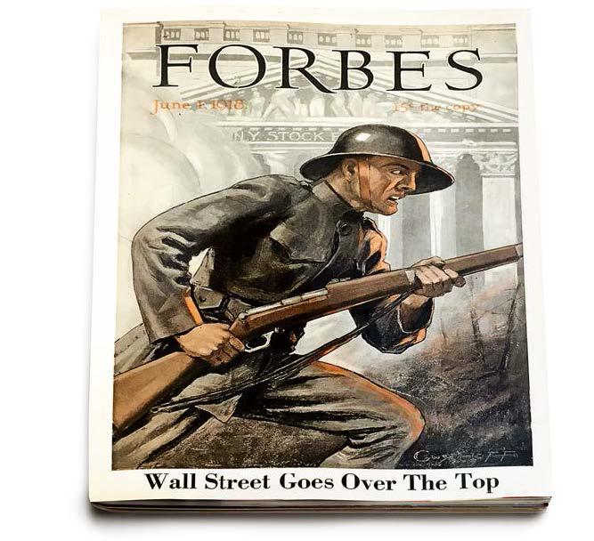 Прошло 14 месяцев с тех пор, как США вступили в мировую войну. Б. Ч. Форбс прошелся по опустевшему зданию Bankers Trust (сейчас 14 Wall Street) и насчитал 490 отсутствующих — Уолл-стрит мобилизовала своих людей на поля сражений. И на продажу бондов, чтобы помочь финансировать войну. «Брокеры убеждают клиентов инвестировать в военные займы», — писал Форбс в главном материале номера. По его подсчетам, ни одна отрасль экономики не внесла сопоставимого бескорыстного вклада в дело войны. Победу будут праздновать 5 месяцев спустя. Всего за годы войны финансисты в США собрали $17 млрд ($320 млрд в сегодняшних ценах), продав 5 выпусков военных облигаций.