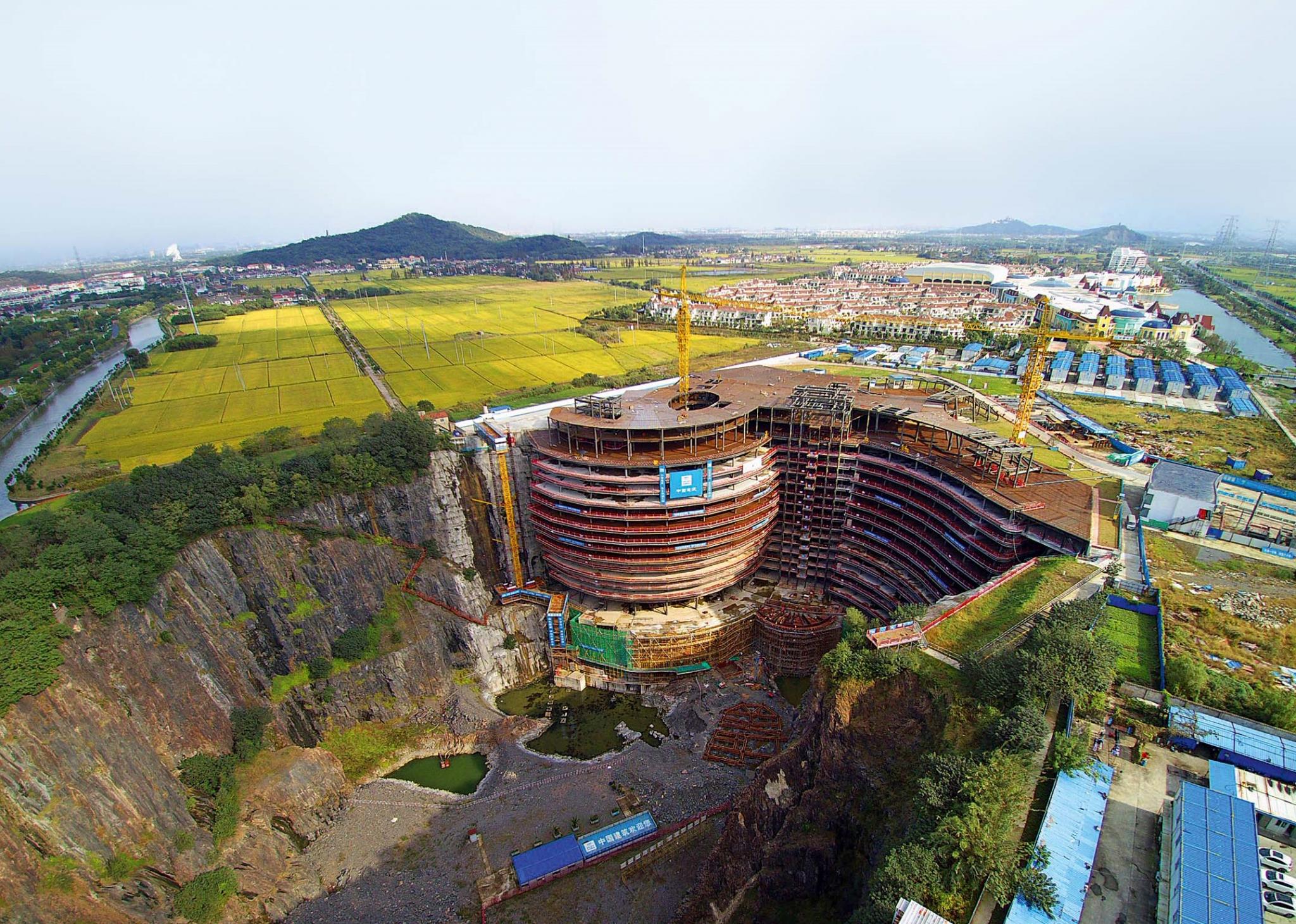 Миллиардер Сюй Жунмао поместил пятизвездный отель в глубокий карьер.