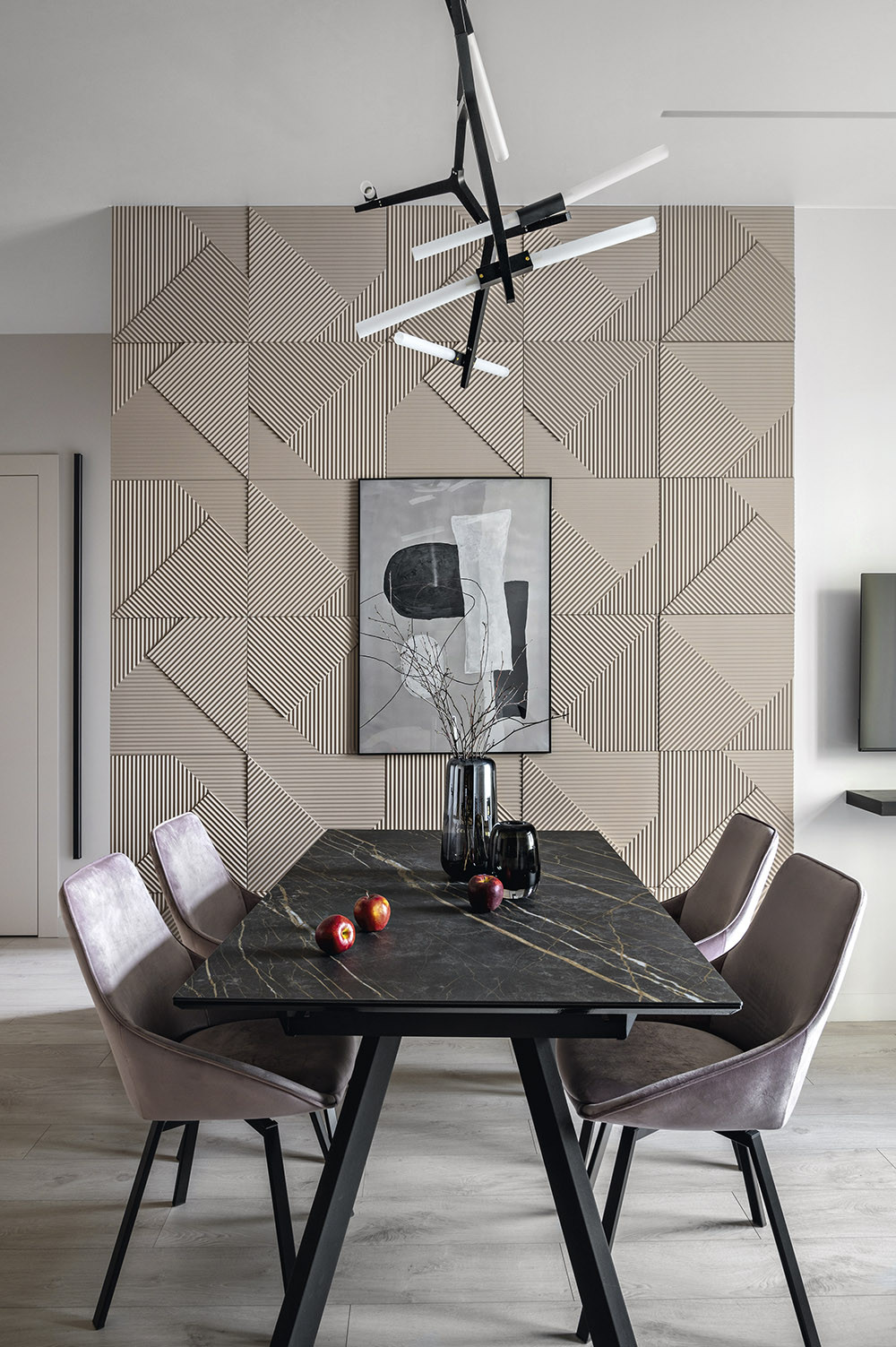 Проект создавался для молодой семейной пары без детей, но с расчётом на то, чтобы с появлением ребёнка квартиру можно было легко продать. Бюджет на ремонт хозяева выделили оптимальный, а дизайн они рассматривали как инвестицию. Результатом работ стал удачный микс из дорогой акцентной мебели, доступной по стоимости отделки и предметов, найденных в популярных маркетплейсах.