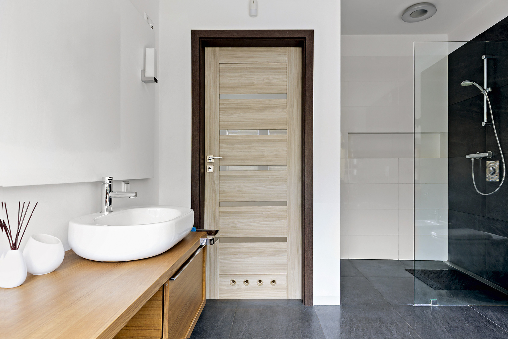 Высокая влажность и температура, брызги воды и мыльной пены — всем этим агрессивным воздействиям подвергаются не только пол и стены, но и дверь санузла, особенно если речь идёт о тесном помещении в типовом доме. Между тем в линейках производителей, как правило, нет специальных моделей для влажных зон, и остаётся покупать обычные серийные изделия, тем более что по современным дизайнерским канонам все двери в квартире должны быть одинаковыми или, по крайней мере, выдержанными в одном стиле.