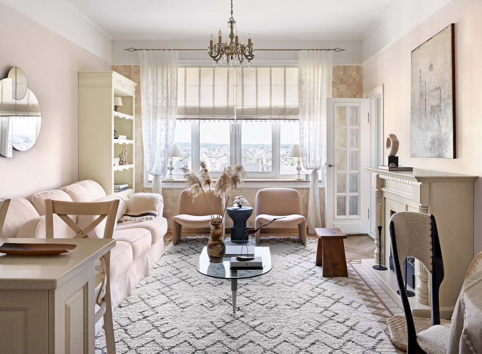 Стилистика классического загородного дома с множеством натуральных материалов, природных цветов — основа интерьера квартиры. Аутентичный декор разных эпох из Испании, Туниса, Марокко привносит разнообразие, шарм и немного восточного настроения