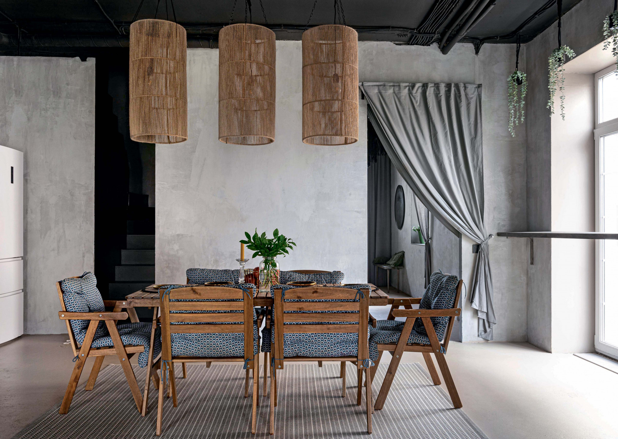 Брутальный интерьер с явным стремлением к минимизации деталей и форм оказался удобен и комфортен для семейной пары и их четырёх детей. Деревянные и hand-made предметы добавляют обстановке домашнего тепла