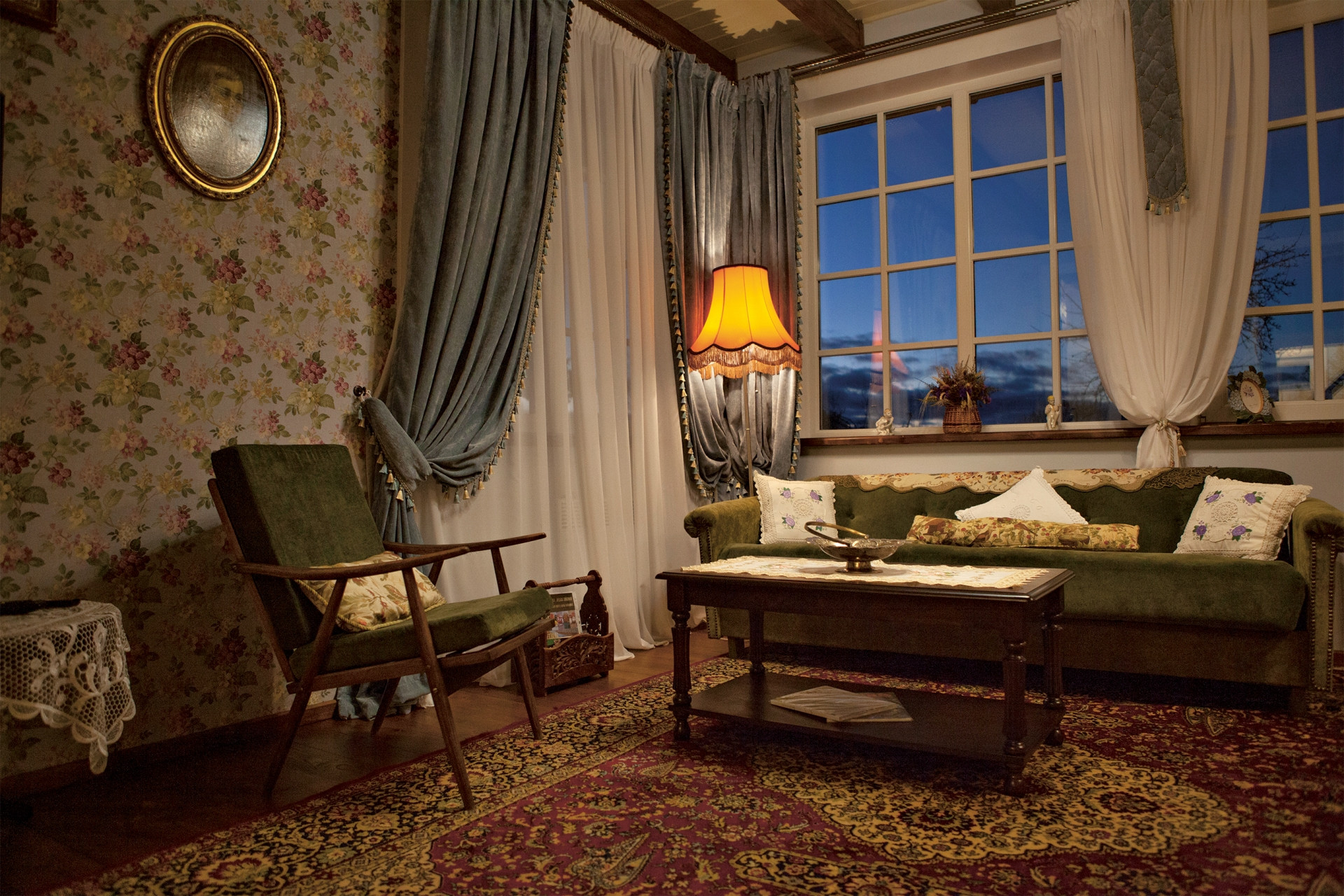 Вот этот стол, стулья, самовар — «жители» этого дома. Здесь очень много мебели осталось от прежних хозяев, мы постарались все, что возможно, отреставрировать, диваны, кресла перетянули, сохранили старые двустворчатые двери. Дом вообще 1956 года постройки, хозяин был художником, музыкантом и, видимо, замечательным строителем — спроектировал дом, всю резьбу на окнах сделал сам. Два года назад внучка Сорокиных решила дом продать, мы его купили и сделали гест-хаус. Так что теперь в Бёхове есть дом, в котором живет наша семья, а чуть ниже по улице — дом Сорокиных.
