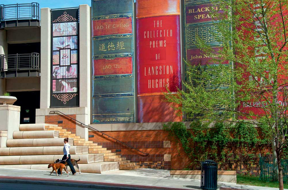 «Республика» Платона, «Ромео и Джульетта» Шекспира, «Сто лет одиночества» Маркеса, «451 градус по Фаренгейту» Брэдбери, «Уловка 22» Хеллера… — любимые произведения жителей Канзас-Сити. Стена из 22 термопластиковых корешков размером до 8 метров в высоту и 3 метров в ширину с названиями книг украшает южный фасад библиотечной парковки. В самой же библиотеке находится более миллиона книг, и посещает ее около 2,5 миллиона читателей в год.