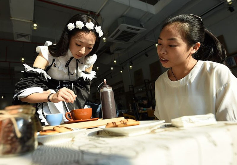 Относительно новый вид развлечения в Японии — мейд-кафе. От обычных они отличаются тем, что официантки тут играют роль горничных. Девушки одеты в черные платья с белыми передниками, встречают посетителей словами «добро пожаловать домой» и делают все, чтобы пришедшие чувствовали себя уютно.