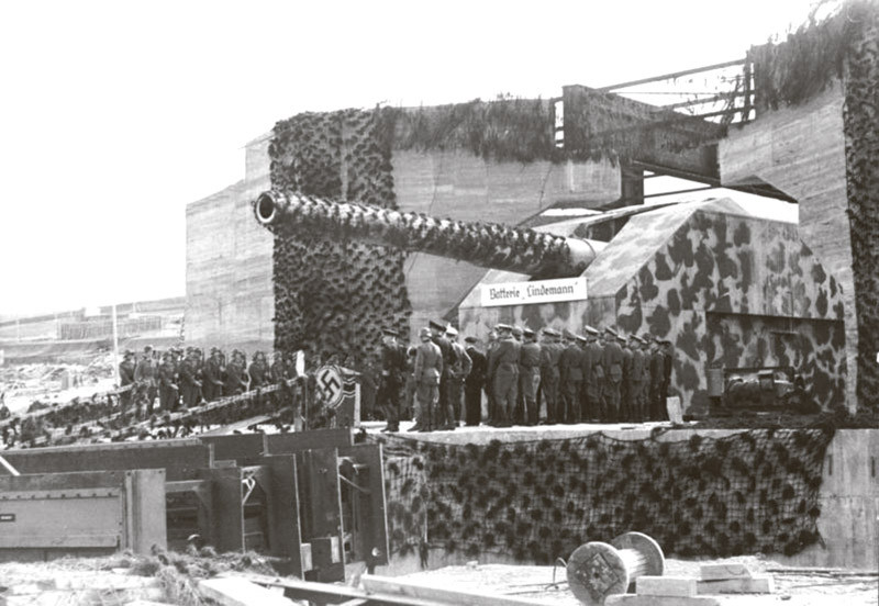 Кроме того, на территории «карманов» на побережье Ла-Манша располагались береговые батареи с орудиями большой мощности, позволяющими обстреливать не только корабли и суда противника, но иногда даже прибрежные районы Англии. Например, расположенная неподалеку от Кале батарея «Линдеманн», названная в честь погибшего вместе со своим кораблем командира линкора «Бисмарк», была оснащена тремя 40,6-см (в это время в Германии калибр орудий измерялся не в миллиметрах, а в сантиметрах) пушками 40.6 cm SK C/34 с дальностью стрельбы до 56 км. Это позволяло держать под обстрелом английское побережья от городка Нью-Ромни до порта Рамсгейт.