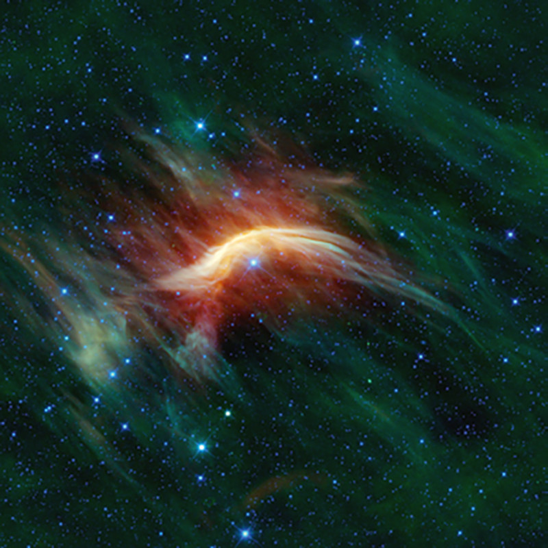 В 366 световых годах от нас находится гигантская звезда Дзета Змееносца (ζ Змееносца, ζ Ophiuchi, или просто ζ Oph). Звезда хороша: масса – 20 солнечных, спектральный класс – О9.5V, температура поверхности – 34 тыс. градусов, светимость примерно в 91 тыс. раз больше солнечной. Если бы не находящееся между нами облако пыли, она была бы одной из ярчайших звезд неба.