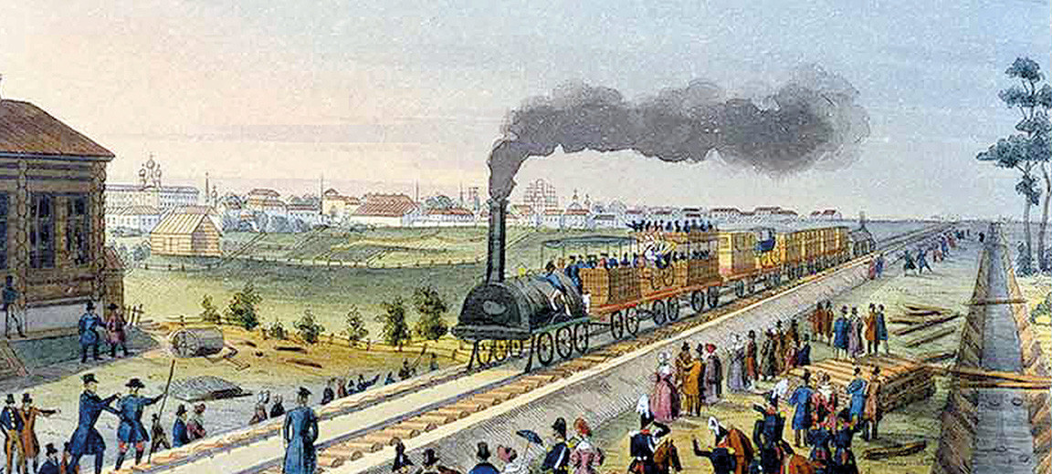 Первая в империи железнодорожная ветка, длинной 26,5 км, была пущена в эксплуатацию в октябре 1837 года. Она соединяла Петербург с Царским Селом. Поезд следовал по ней с огромной по тем временам скоростью, более 50 км/час, однако Царскосельская дорога была не столько транспортным средством, сколько увлекательным аттракционом.