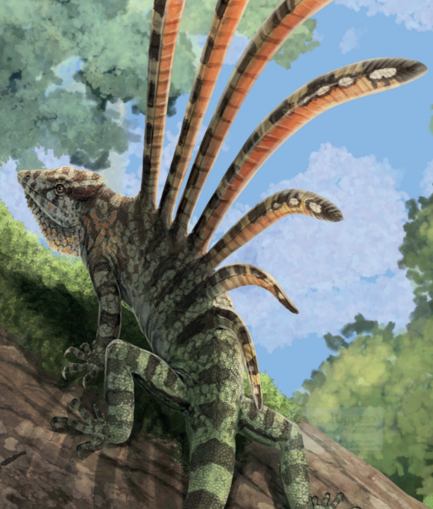 Как и в случае с возвращением в воду (см. наш цикл о Мезозойской морской революции), воздух первыми начали покорять рептилии, которые были загнаны на деревья синапсидами. Похожие на ящериц создания сначала пытались приспособиться к длинным прыжкам, а потом уже перешли к полноценному планированию. Для этого потребовалось всего… 50–60 млн лет с момента появления рептилий.