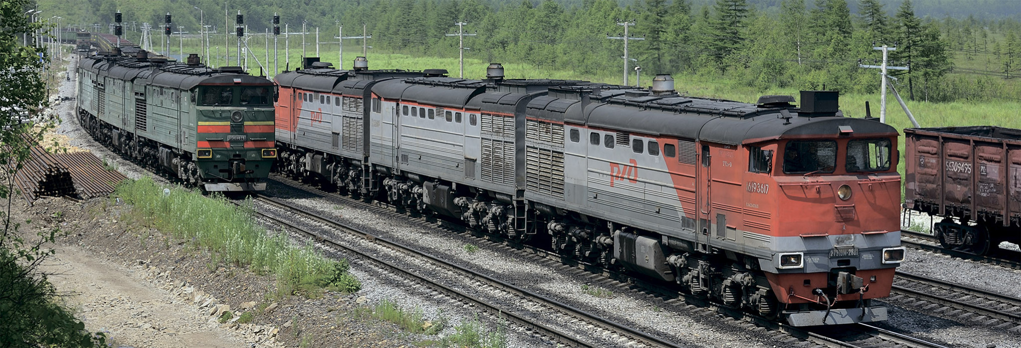 Локомотив с хитромудрым названием «3ТЭ25К2М» хоть и набит электроникой, но физику не обманешь: мороз за сорок, на рельсах снег – ехать не особо хочет, колесные пáры то и дело срываются в боксование, подвывают редукторы, тепловоз потряхивает носом. Когда рывки становятся совсем уж неприличными, приходится сбрасывать несколько позиций и добавлять песка, потом осторожно набираться обратно. На старичках 3ТЭ10М стрелка амперметра порой летала из угла в угол, а здесь цифровое поóсное регулирование старается, подравнивает токи, смягчает рывки. Но не обманешь ее, физику-то...