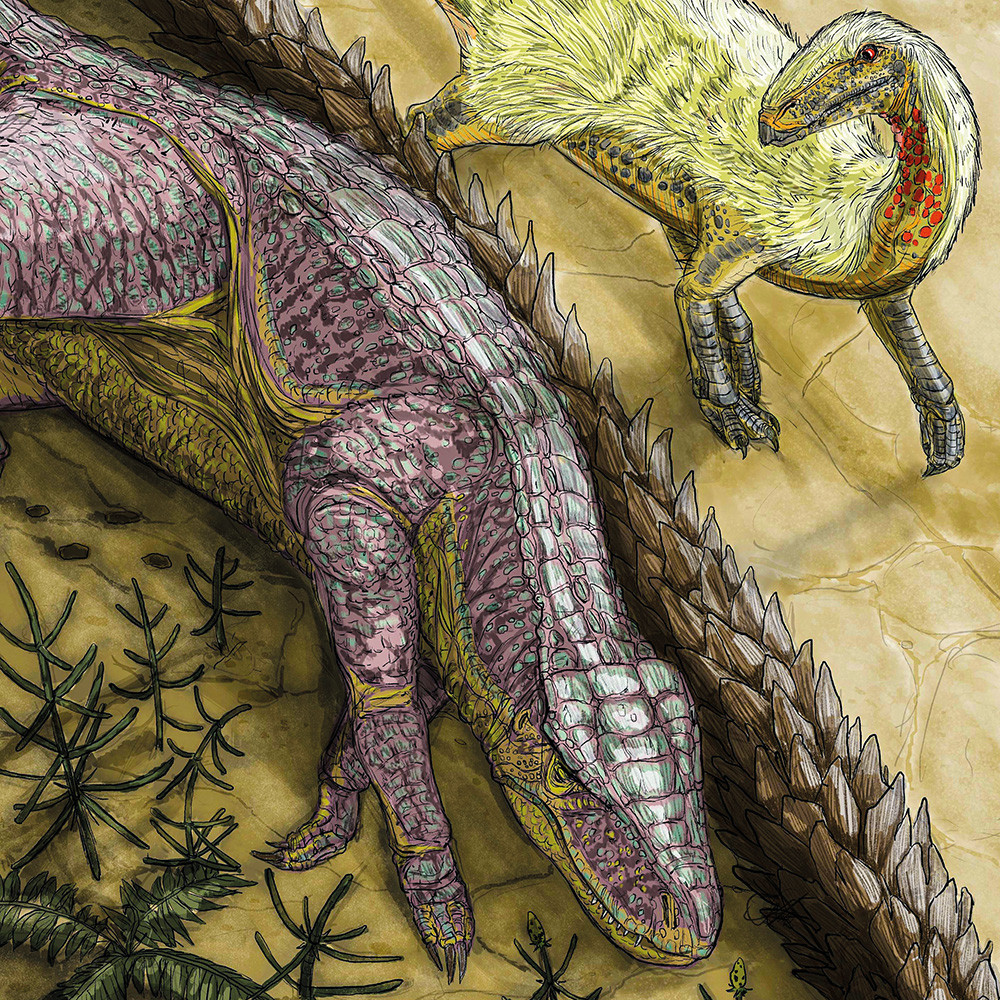 Псевдозухии и авеметатарзалии разошлись примерно 250–248 млн лет назад, в триасовом периоде, породив массу необычных форм. И если авеметатарзалии создали что-то болееменее однообразное – некрупное, двуногое, хвостатое, похожее на динозаврика из вашей детской книжки, то псевдозухии разошлись на славу. И двуногие хищники, и бронированные растительноядные, и полуводные, и полностью наземные, и – уже в юрскую эпоху – полностью водные. Некоторые из этих форм были вполне успешными и конкурировали с другими архозаврами и синапсидами за место под солнцем, но вот потом случилось триасовоюрское вымирание, которое ударило по огромному числу групп, и крокодилы сдулись до плюс-минус узнаваемых форм. При этом стоит отметить, что даже эти формы сохраняли высокую степень адаптивности к разным средам.