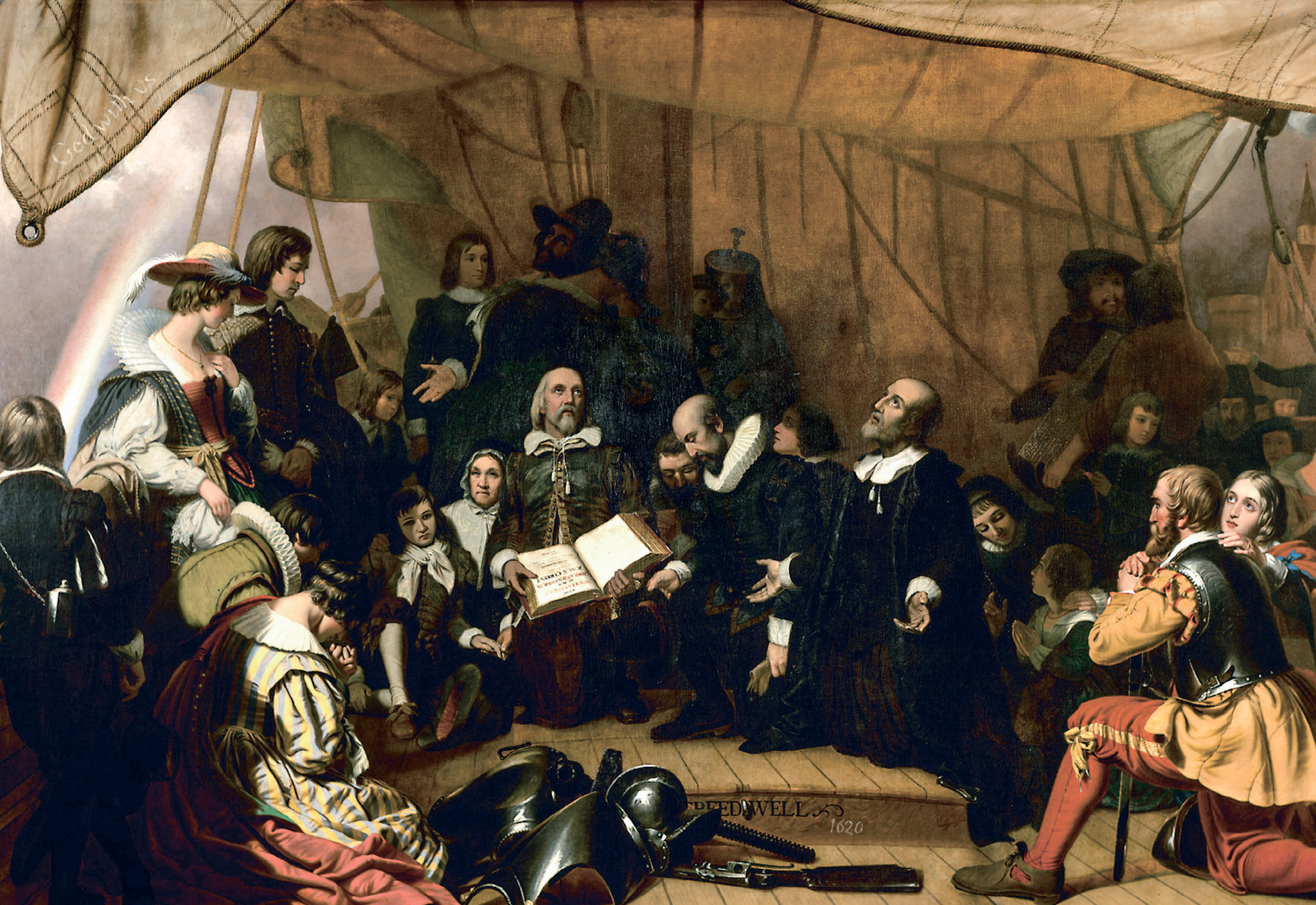 Казалось, такая же судьба ждет и пассажиров «Мэйфлауэр», торгового галеона, отплывшего в Америку в 1620 году. Будучи радикальными протестантами, они подвергались религиозным преследованиям у себя на родине и были вынуждены заключить контракт с Виргинской компанией. Но случилось так, что непогода отнесла судно далеко на север. Пассажиры не смогли вовремя добраться до своих работодателей, высадились в безлюдных местах и попытались выжить. Половина умерли в первый голодный год, но остальные дождались урожая, отпраздновали первый в истории США День благодарения и стали основателями еще одной колонии — Новой Англии. Здесь прижились небольшие семейные фермы, оказавшиеся вполне эффективной формой в данных природных условиях.