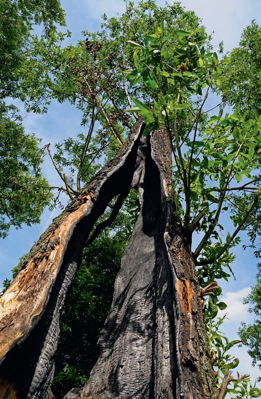 Эту распространённую житейскую мудрость ботаники и экологи проверили на острове Барро-Колорадо, который находится посреди Панамского канала. Если в лесах Севера и средней полосы следы молний — обугленные ветви и обгорелые пни — хорошо заметны, то в буйном тропическом лесу такие повреждения быстро зарастают лианами, лишайниками, другой флорой. Недавно экологи разместили на острове несколько датчиков грозовых разрядов и автоматических фотокамер. К осени 2019 года они успели зафиксировать более 70 попаданий молнии в деревья. Оказалось, что средний удар грозового электричества убивает 5 деревьев и повреждает ещё 16 соседних, так как перескакивает на них.