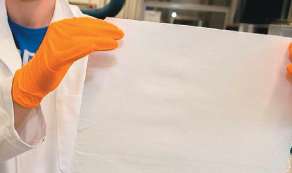 Применяемые сейчас медицинские маски в лучшем случае задерживают вирусы и бактерии. Исследователи из Политехнической школы в Лозанне (Швейцария) предложили для масок материал, который под действием ультрафиолетового света образует из влаги окружающего воздуха дезинфицирующую перекись водорода. Маску из нановолокон окиси титана можно повторно использовать до тысячи раз, перед новым применением подержав перед ультрафиолетовой лампой. Внешне фильтр похож на обычную фильтровальную бумагу (см. фото).