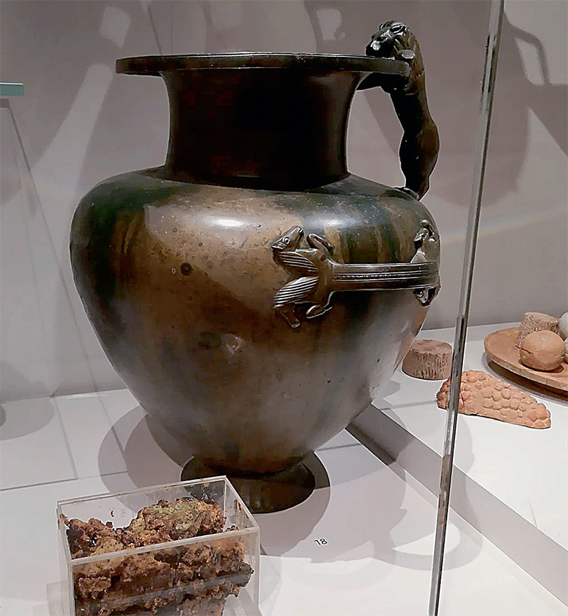 На снимке — кувшин из Пестума с извлечённым из него осадком.