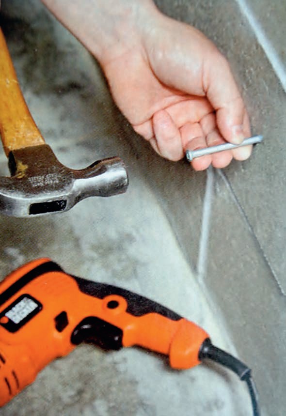 Когда начинаешь сверлить бетон или каменную кладку, сверло часто уводит в сторону. Чтобы избежать этого, наметьте в стене ямку специальным гвоздём из закалённой стали (такие применяются для особо твёрдых поверхностей). Другой способ: на твёрдую поверхность наклеить прочной (монтажной) клеящей лентой кусочек картона и начать сверлить с него.