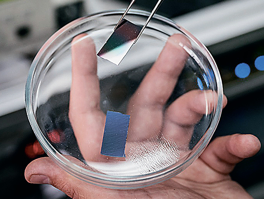 Образец сплава с высокоэнтропийным тонкоплёночным керамическим покрытием после испытания при температуре до 1100°C. Фото предоставлено пресс-службой Томского политехнического университета