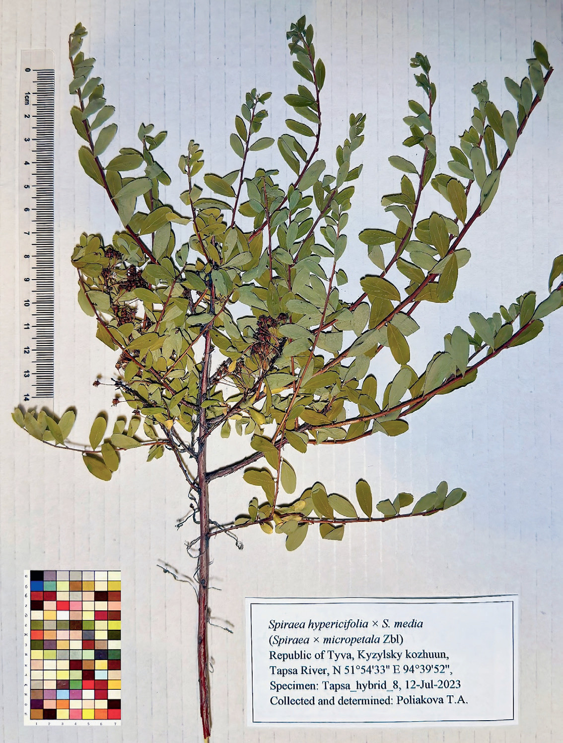 Во время полевого сезона 2023 года в степях Тувы мне посчастливилось обнаружить необычные растения, которые оказались гибридами двух известных декоративных видов спиреи: спиреи зверобоелистной, Spiraea hypericifolia, лесостепного евроазиатского вида, и спиреи средней, Spiraea media, лесного, сибирско-восточноазиатского вида. На момент находки я не знала, что это за гибрид, и начала искать сведения в научной литературе. К моему удивлению, упоминание об этом гибриде я нашла в монографии немецкого ботаника и садовода Германа Цабеля (Hermann Zabel, 1832—1912) «Die strauchigen Spiräen der deutschen Gärten» («Кустарниковые спиреи немецких садов»), изданной в 1893 году. Эта монография — редкая находка ботанической литературы XIX века — стала отправной точкой для дальнейших поисков и молекулярных исследований гибрида. Так началась захватывающая история, связавшая прошлое с будущим. История гибридного растения, обнаруженного в природе спустя более чем столетие после его создания.