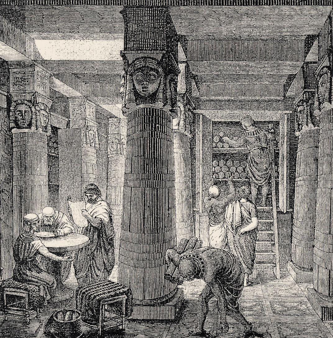 Более поздний каталог начертан на стене библиотеки в храме бога Гора, заложенном в августе 237 года до н. э. в египетском городе Эдфу. Точнее, это опись. Она озаглавлена «Перечень ящиков, содержащих письмена на больших свитках из кожи» (кстати, в соседнем помещении находилась храмовая аптека, и там на стене были высечены рецепты лекарств и врачебные советы). Примерно в те же годы Каллимах из Кирены, греческий поэт, учёный и философ, составил каталог знаменитой Александрийской библиотеки. Это был первый в истории сводный каталог, так как в нём перечислялись также и труды, хранящиеся в других библиотеках.