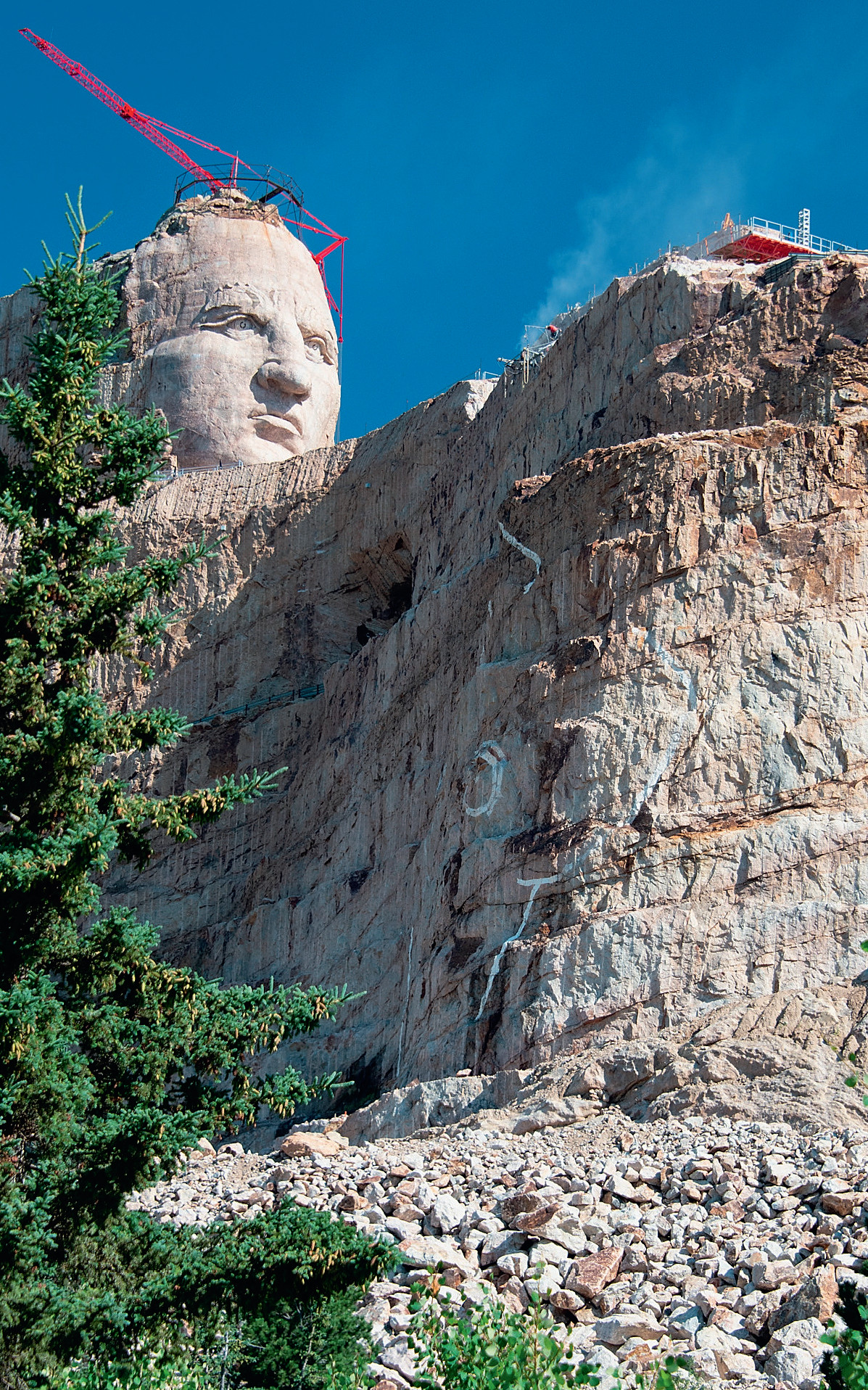 Американский скульптор польского происхождения Корчак Зюлковски в 1947 году задумал высечь из горы в штате Южная Дакота статую легендарного индейского вождя племени оглала по прозванию Неистовый Конь. Индеец должен восседать на коне, указывая рукой на земли, принадлежавшие племени. Зюлковски рассчитывал, что племя оглала соберёт средства на монумент, но этого не произошло, а брать деньги, предложенные правительством США, он не пожелал. Поэтому он продолжал до самой смерти, последовавшей в 1982 году, работать за свой счёт, а сейчас его наследники, используя время от времени поступающие взносы от благотворителей, по возможности продолжают работы. Пока готово только лицо индейца, высота его 27 м. Идёт работа над ногтями руки, протянутой вперёд.